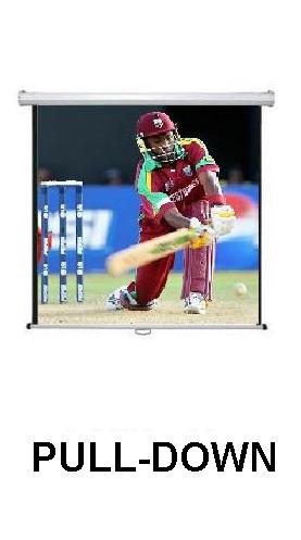 Home Theatre screens may be wide or standard format (depending upon the projector used) and are normally electric or fixed frame screens. Many people renting also like the convenience of the portable Pull-Up screens so as not to damage walls.